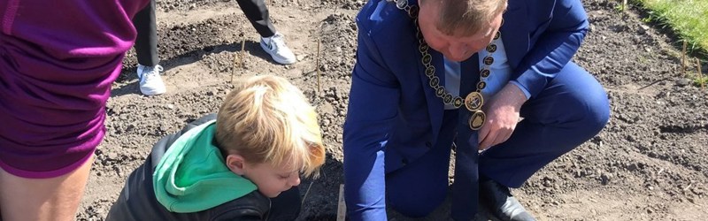 Borgmesteren var på besøg hos 2.B fra Store Magleby Skole, da de første frø blev plantet efter påsken.