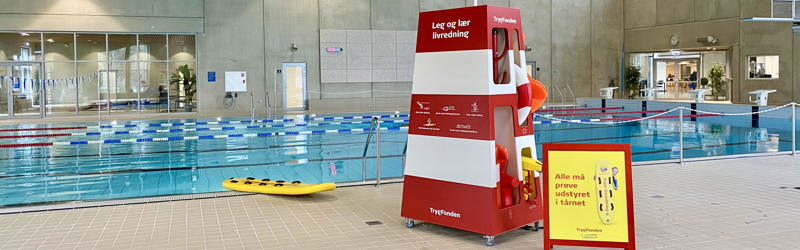 Dragør Svømmehal har fået et livreddertårn fra TrygFonden, hvor alle besøgende kan lære om livredning og prøve det i svømmehallen.