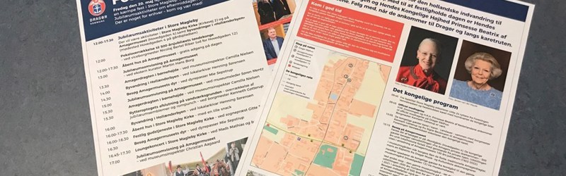 Fredag den 20. maj fejrer vi 500-året for den hollandske indvandring med en kæmpe fest i Store Magleby. Der er kongeligt program om formiddagen. Jubilæumsaktiviteter om eftermiddagen og fest om aftenen. Der er noget for enhver – kom og vær med!